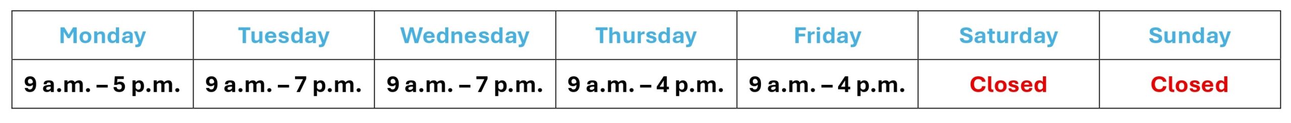 FREE evening classes Tuesdays & Wednesdays from 4:30 – 6:30 p.m.